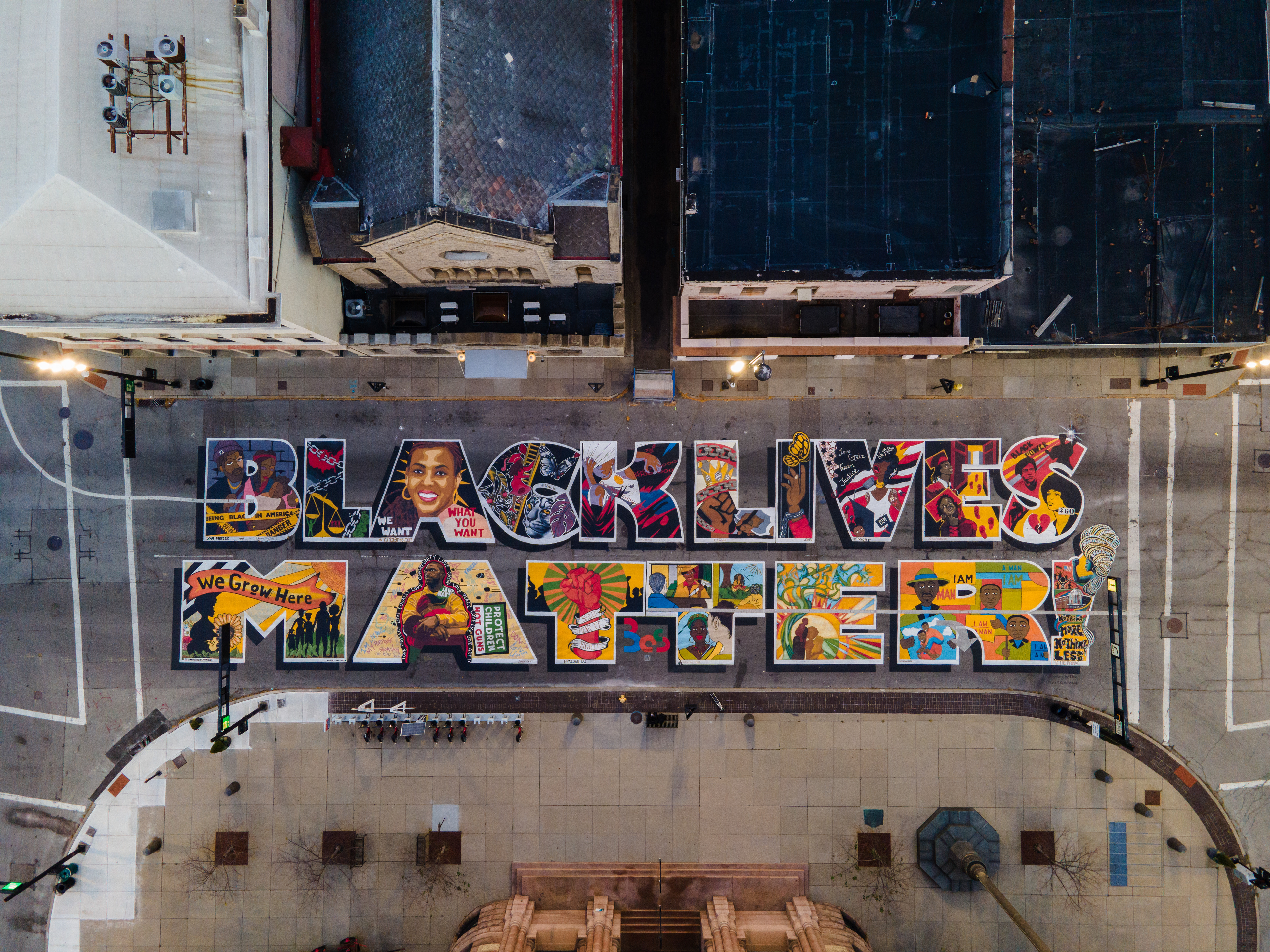 "Black Lives Matter!" Street Mural at City Hall, Cincinnati, OH (June 2020)